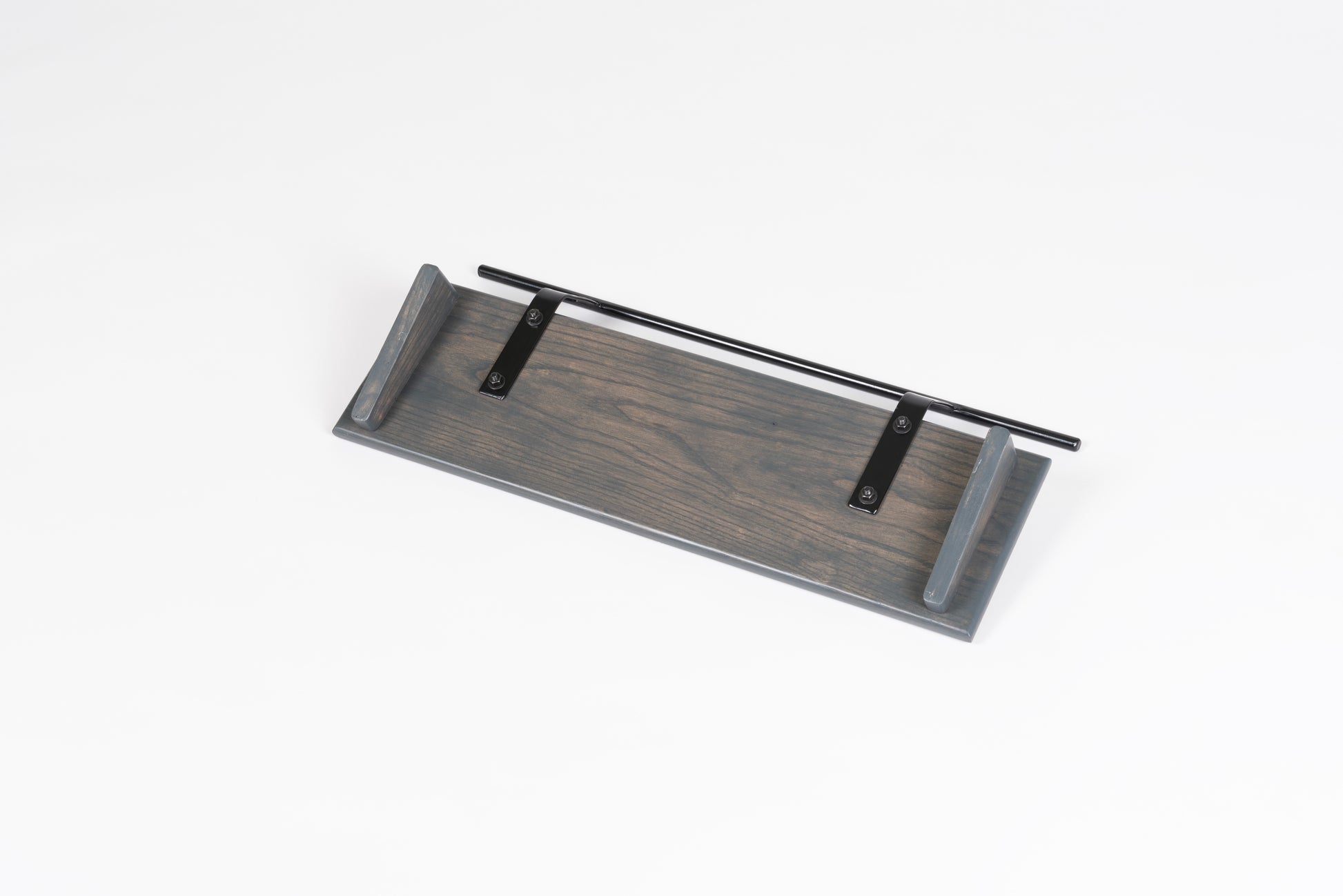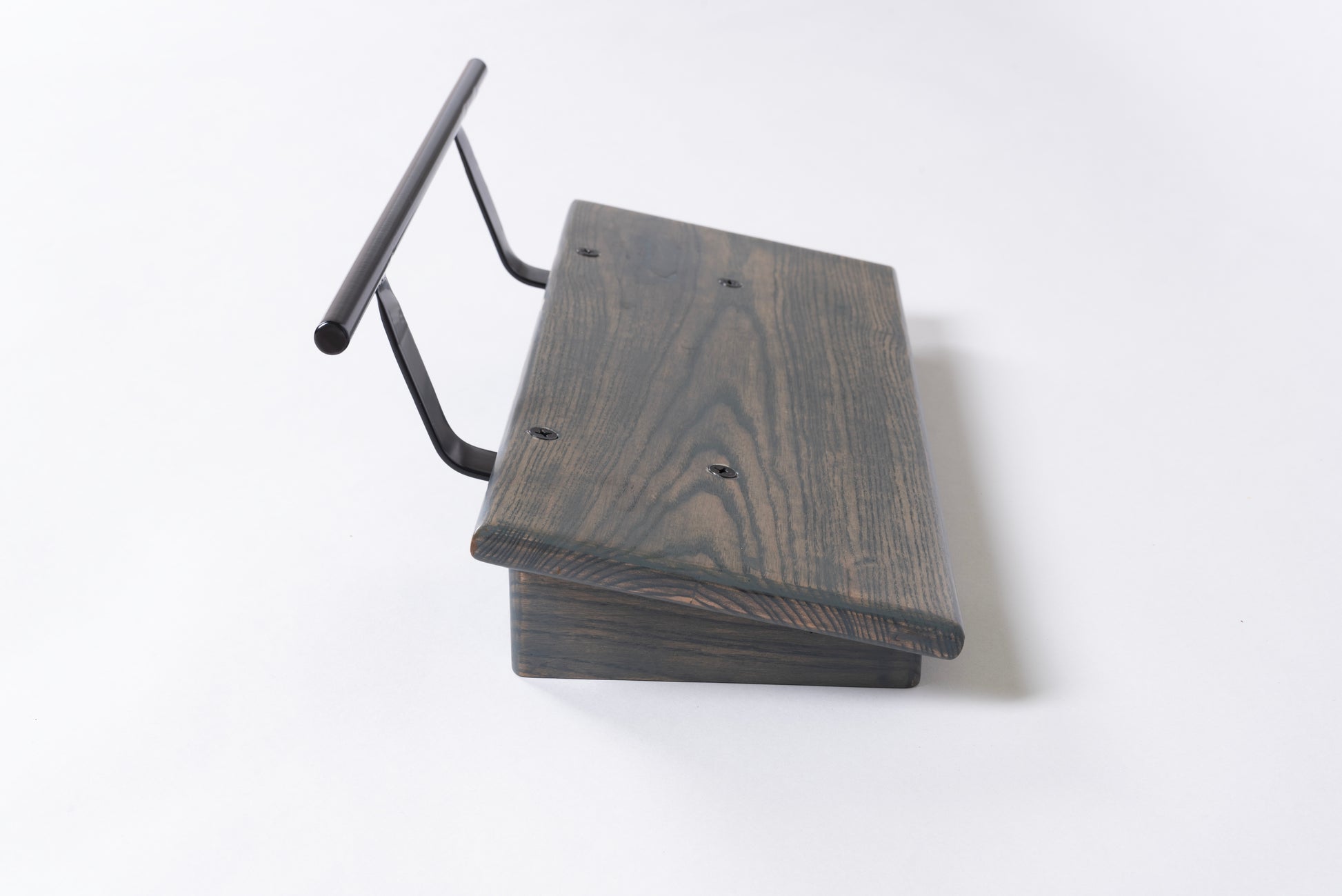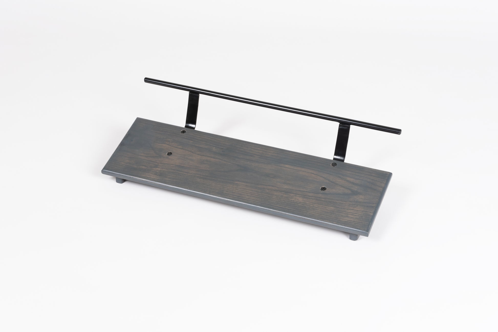 An 8” deep Ash slanted pedal board in either 18” or 24” length in a Carbon Gray matte finish with a Gloss Black Round handle.