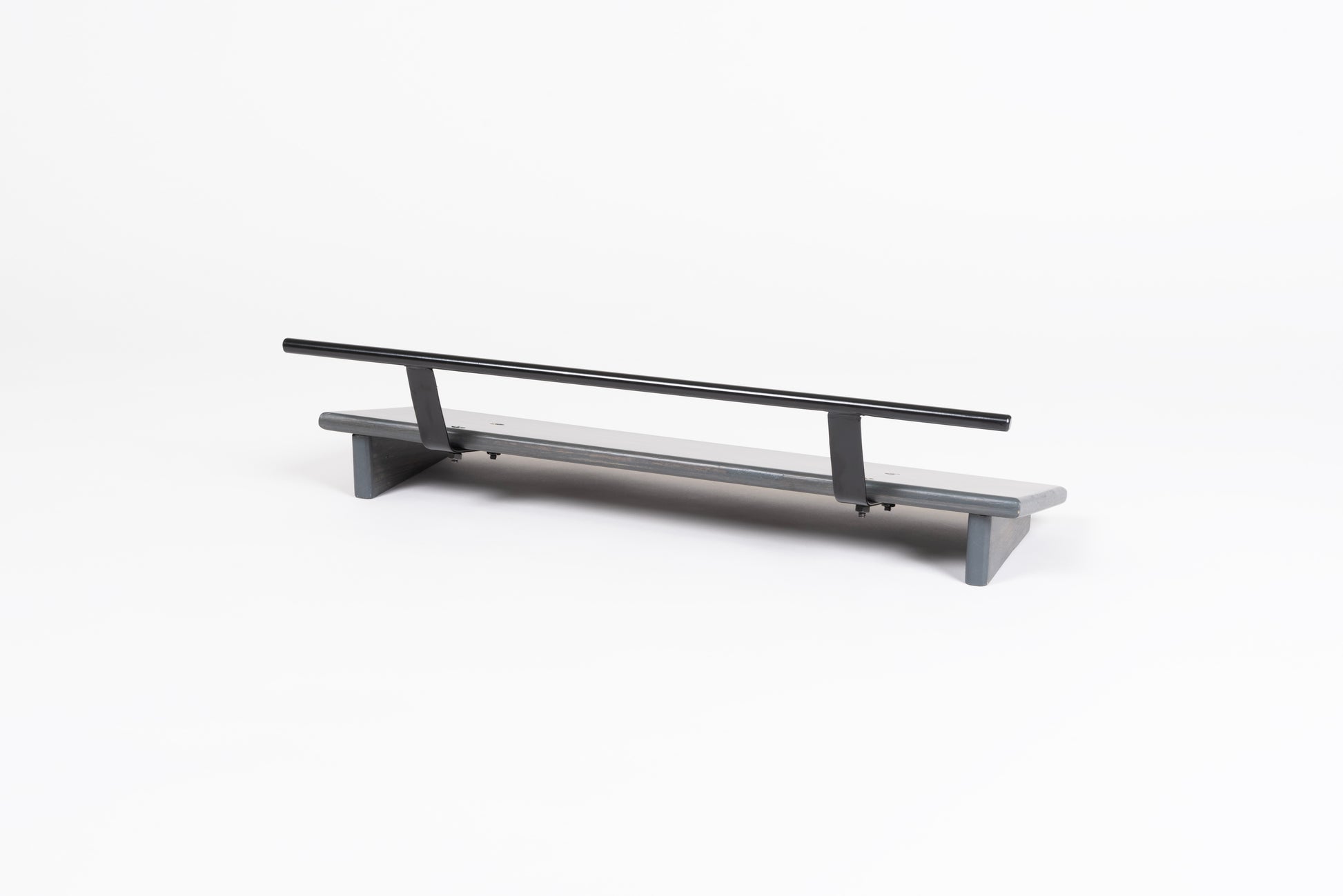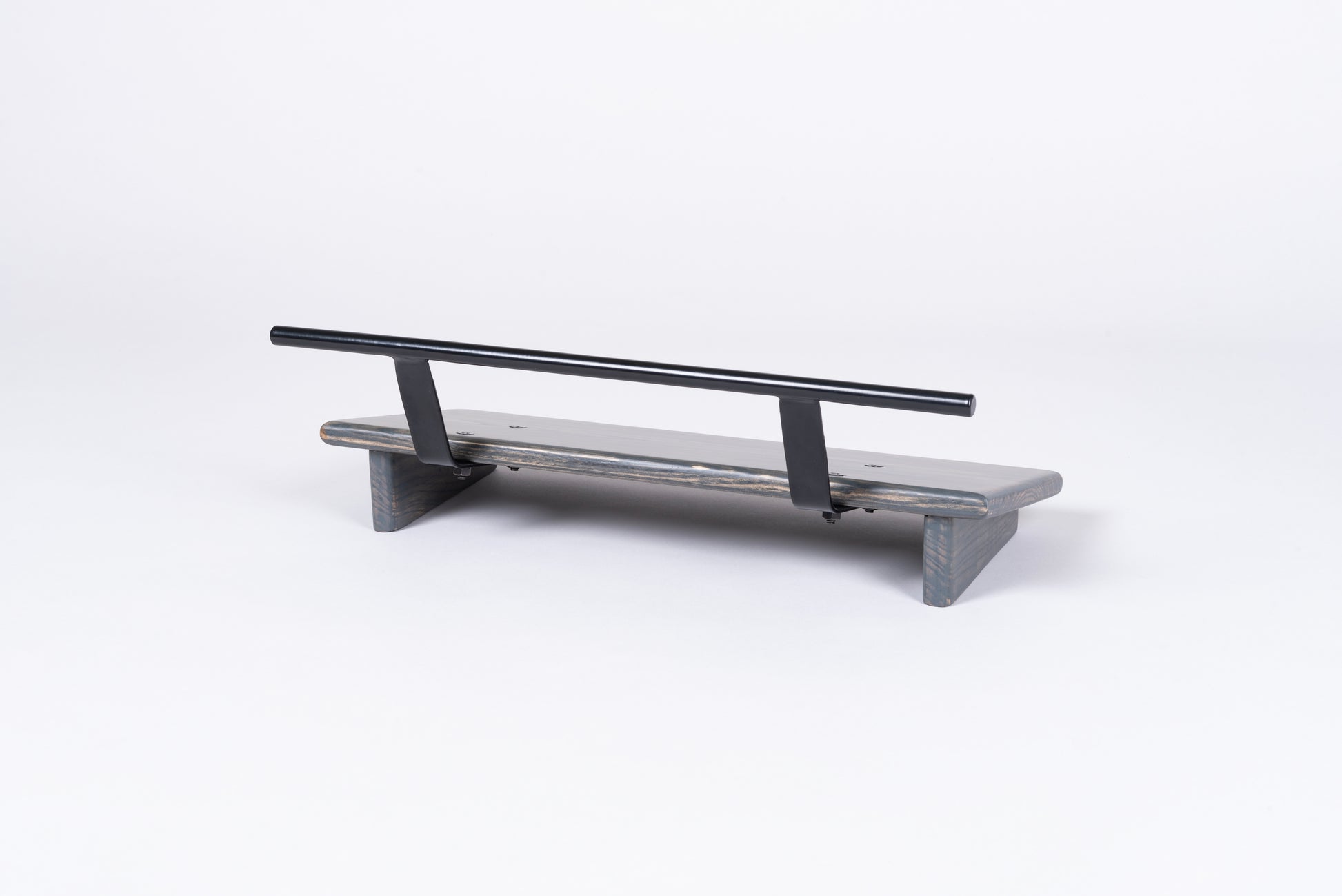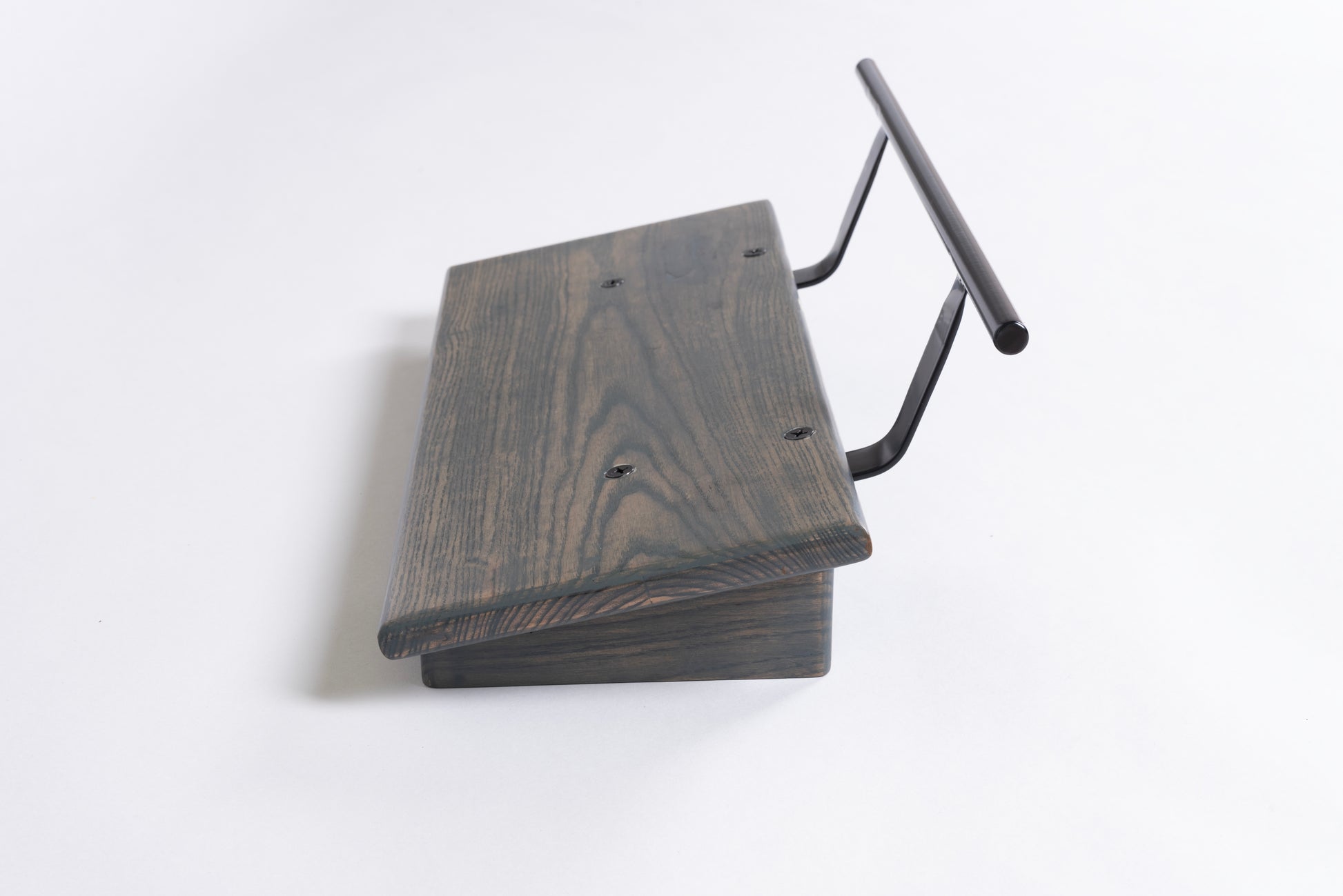 An 8” deep Ash slanted pedal board in either 18” or 24” length in a Carbon Gray matte finish with a Gloss Black Round handle.